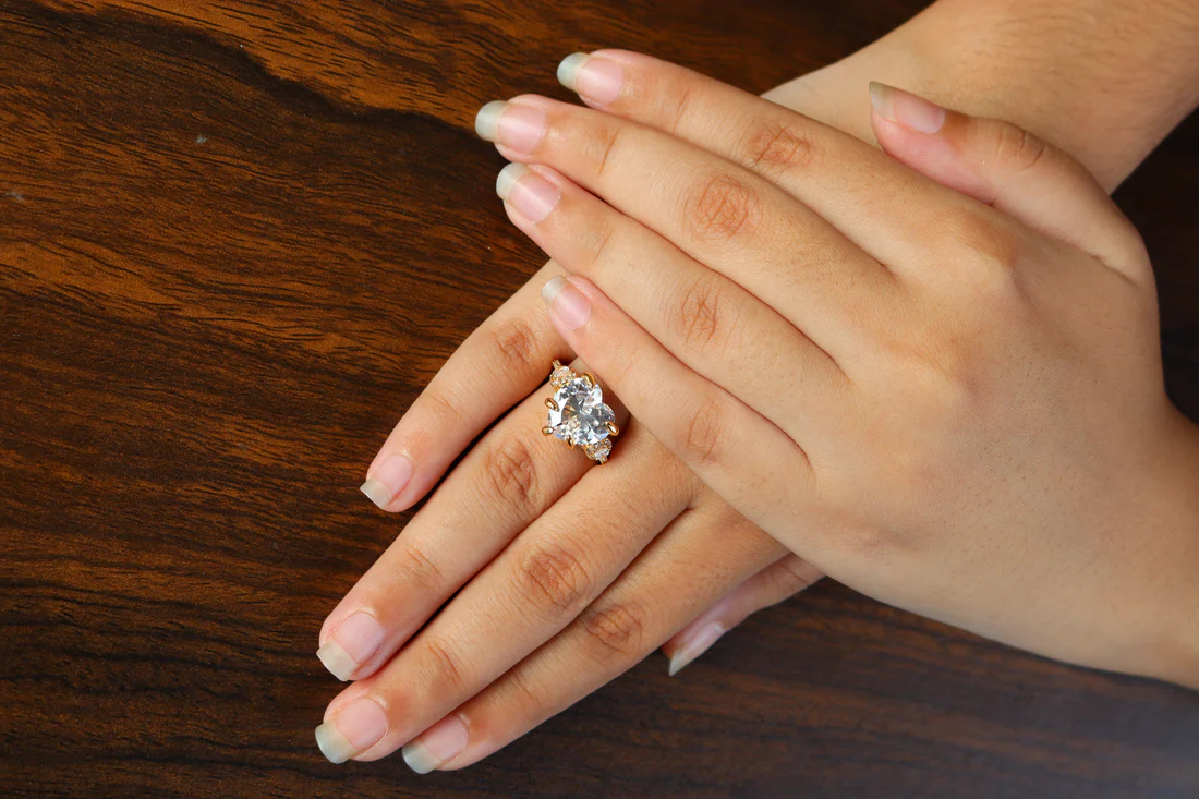 • Center Stone: A heart-shaped clear gemstone, vibrant and romantic as the focal point.