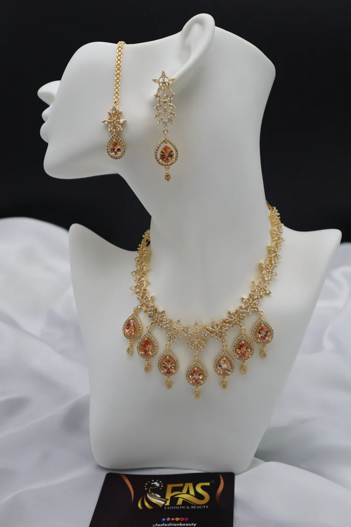 • Design: Statement piece with intricate patterns and tear-drop shaped focal stones.