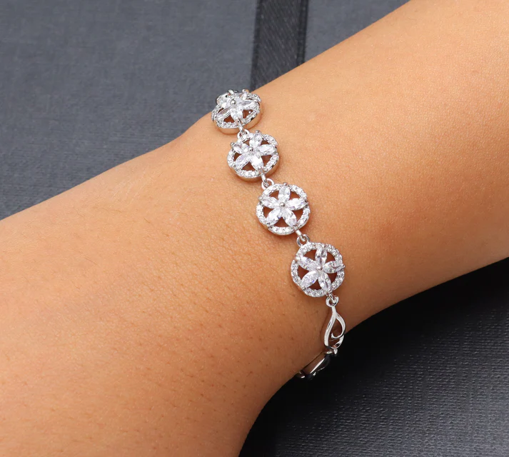 • Design: The openwork floral motif is embedded with brilliant zircon stones, forming a dazzling symmetrical pattern that enhances the bracelet’s luxurious appeal.
