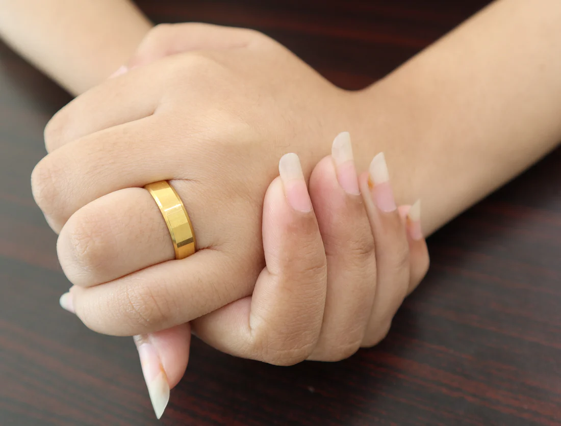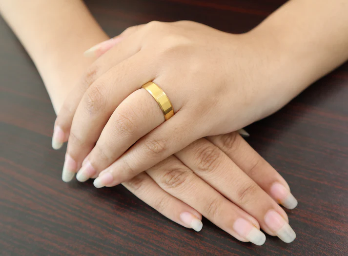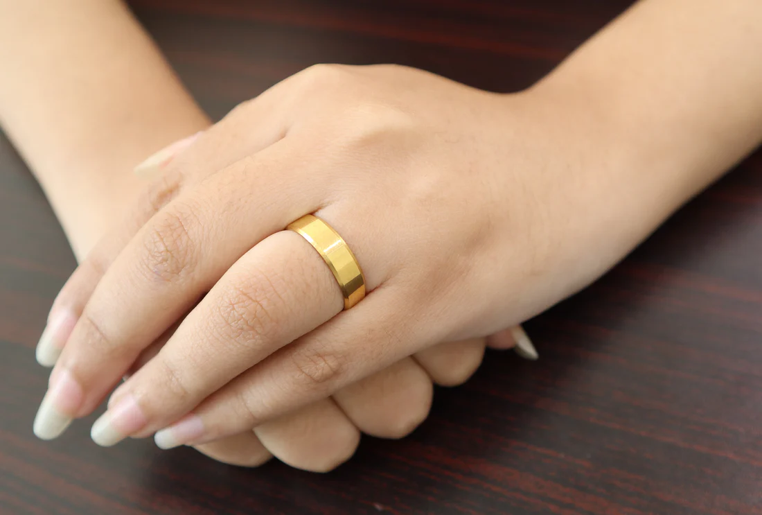 Keep your ring away from water, chemicals, and harsh activities to preserve its shine and quality.