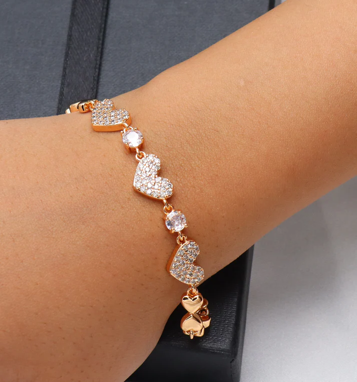 - Design: A bracelet featuring a series of heart-shaped links, each adorned with shimmering pave-set zircon stones.