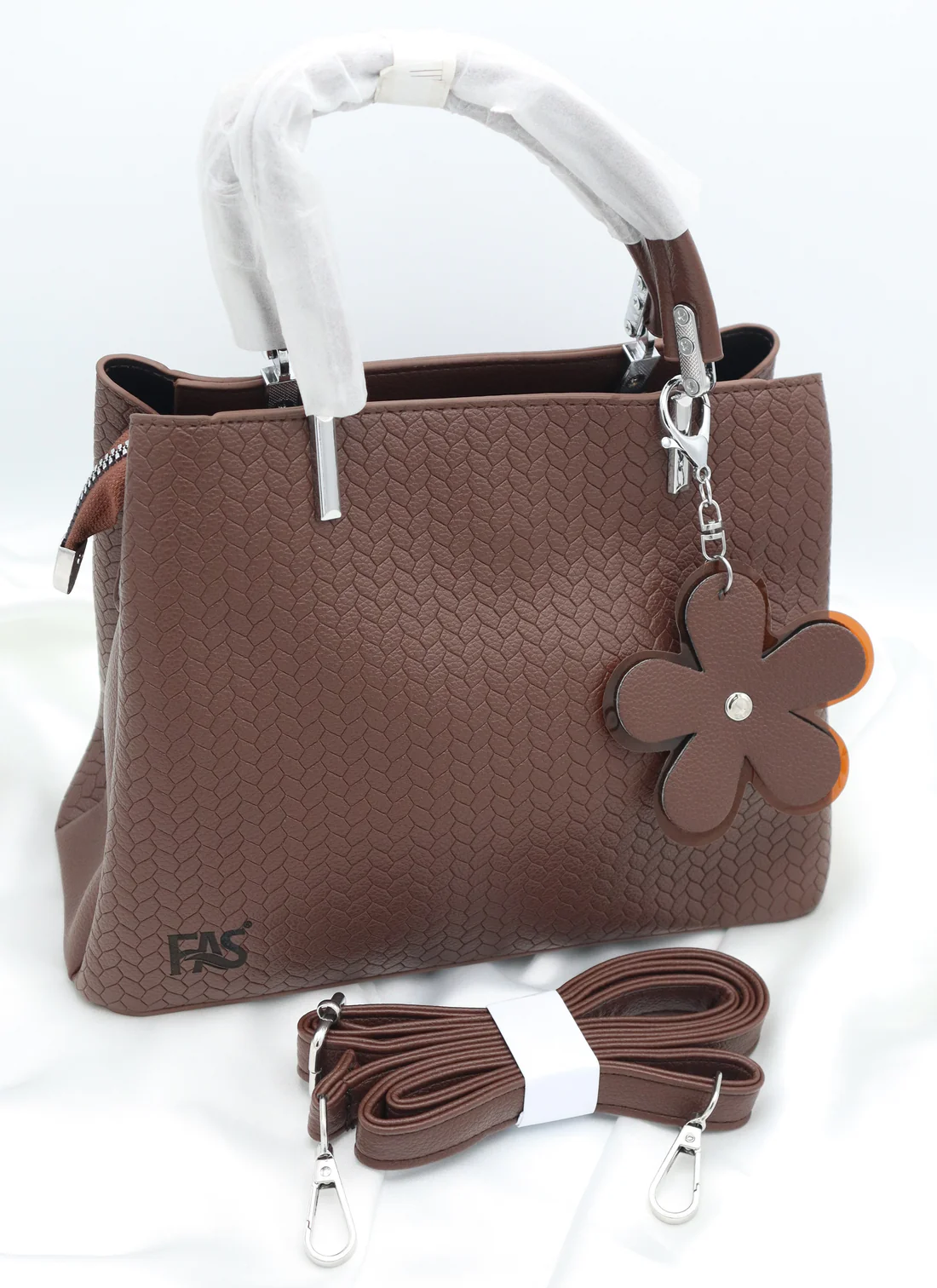 • Adorned with a stylish flower charm featuring layered leather details.