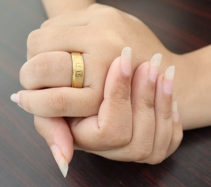 Keep your ring away from water, chemicals, and harsh activities to preserve its shine and quality.