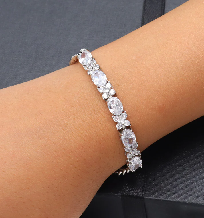 - Design: The oval-cut zircon stones are arranged in a classic tennis bracelet style, exuding luxury and sophistication.