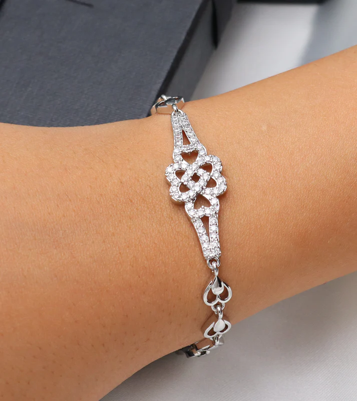 - Design: A floral-inspired bracelet with an intricate blooming flower motif at the center. The delicate structure is accentuated with sparkling zircon stones.