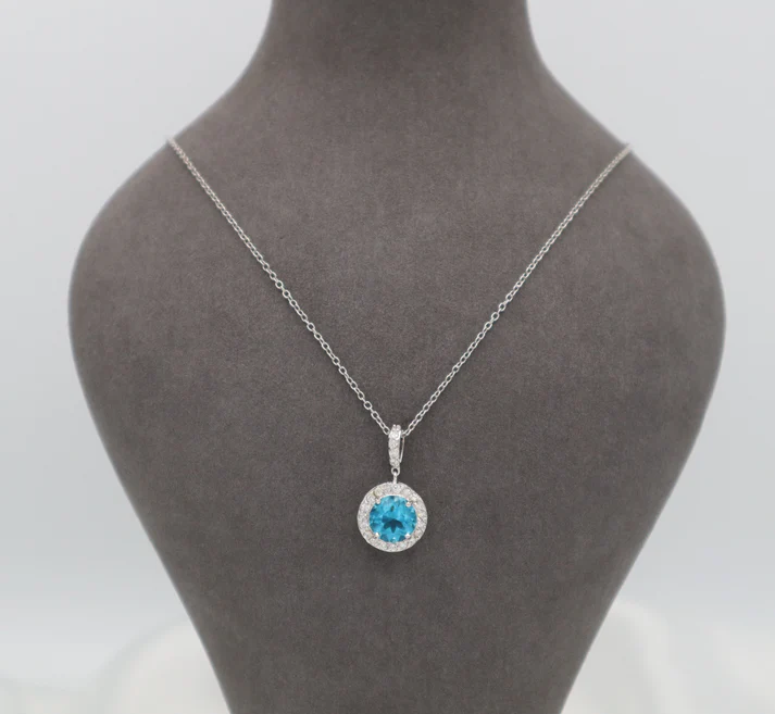 - Stone: A sleek silver-toned chain, complementing the pendant’s vibrant light blue hue.