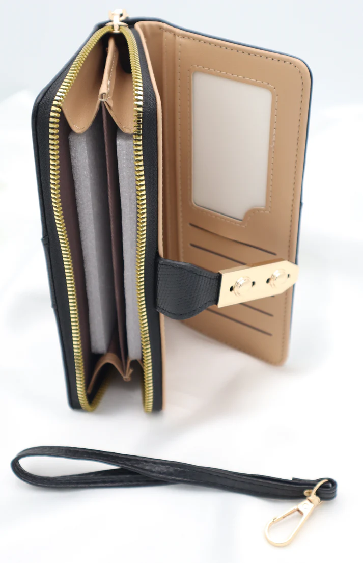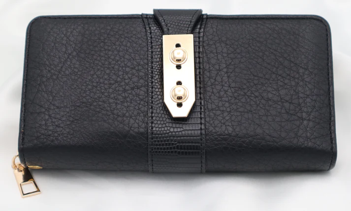 Smooth gold zipper along the edges for secure storage.