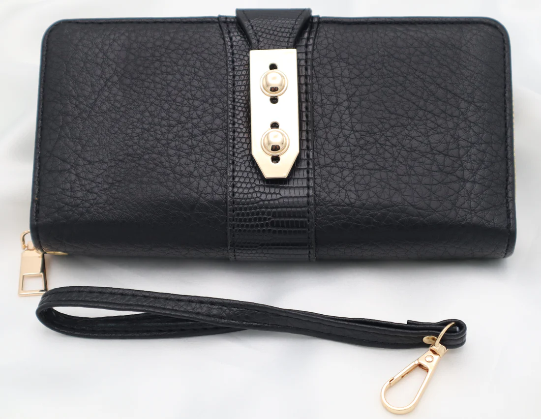 Gold-tone turn-lock closure for a luxe accent.