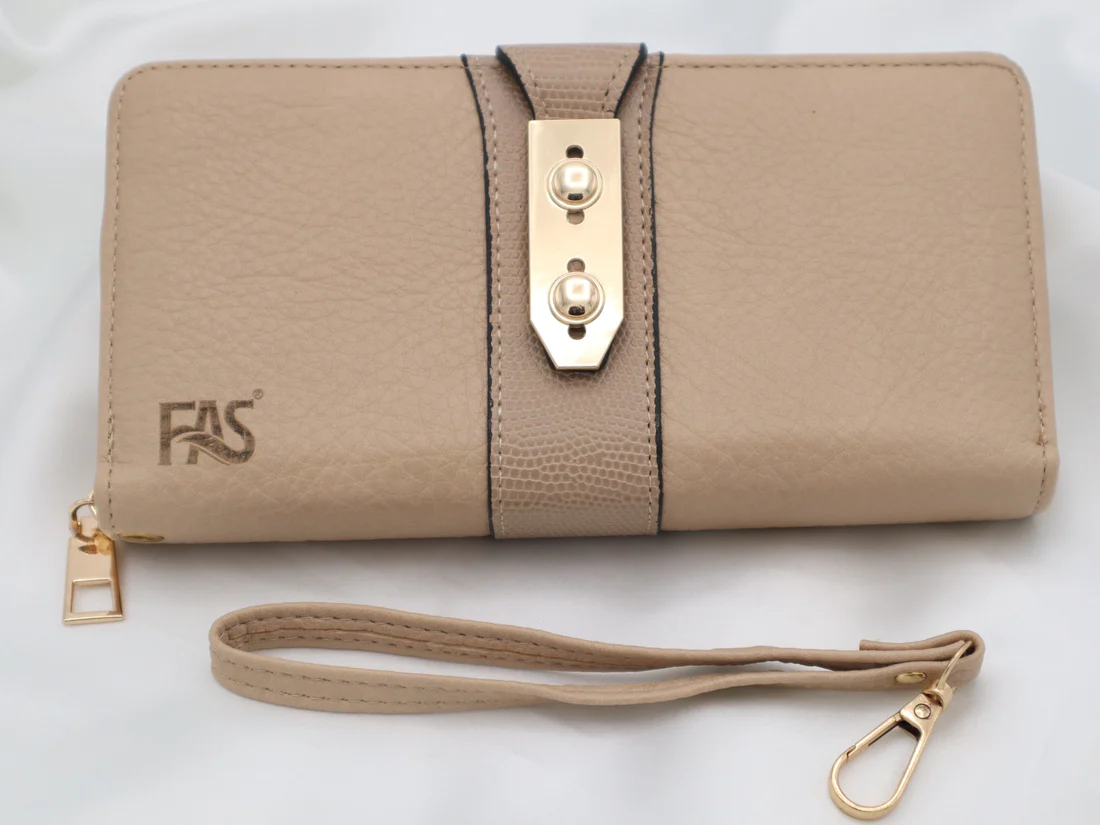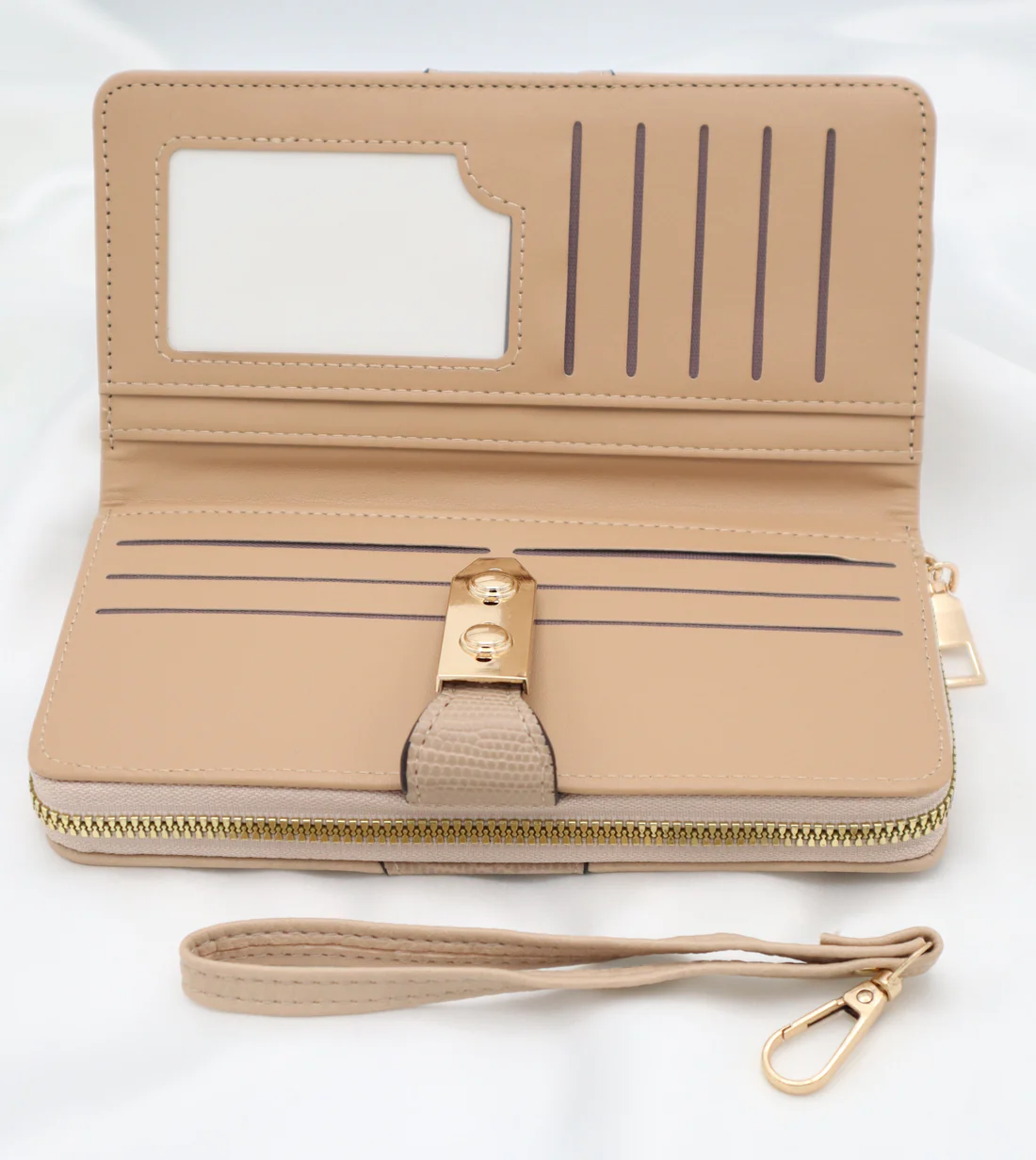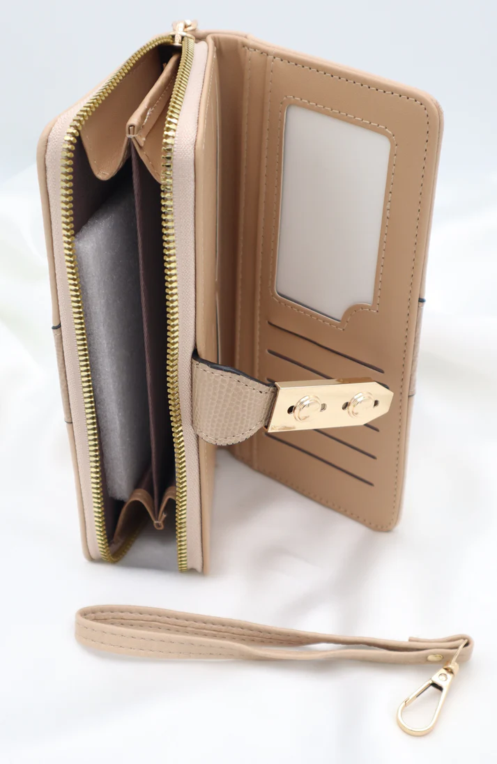 Smooth gold zipper along the edges for secure storage.